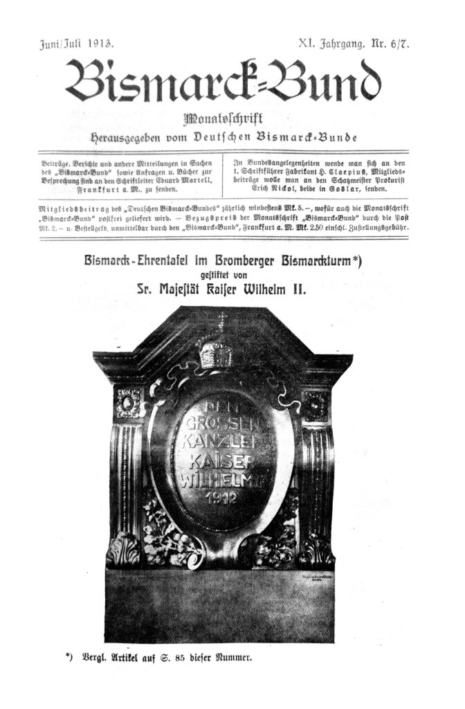 Статьи 1950х гг. выходили при жизни Кадерайта, но даже если и согласовывались с ним, они — мемуарная литература. Нам интереснее та, что выходила одновременно с событиями. Такая как журнал «Союз Бисмарка» («Bismarck-Bund»), трижды за 1913 упоминавший нашу башню. В июне они писали: